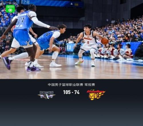 第四节北京范子铭拿下6分,广东胡明轩拿下7分,最终北京105-74战胜广东