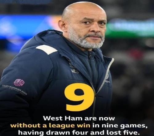 努诺本赛季中途接手西汉姆联教鞭至今,带队15场仅获得2场胜利,目前更是连续9轮英超不胜(4平5负),球队深陷降级区且防守崩盘(西汉姆联20轮英超狂丢41球,失球数英超最多)。根据数据统计显示,这是西汉姆联自2011年之后,首次在英超赛场遭遇如此漫长的连续不胜。回溯2010/11赛季,铁锤帮曾从那个赛季3月的第30轮联赛起,连续9场比赛未尝胜绩(2平7负),最终以38轮积33分的成绩排名联赛垫底惨遭降级。